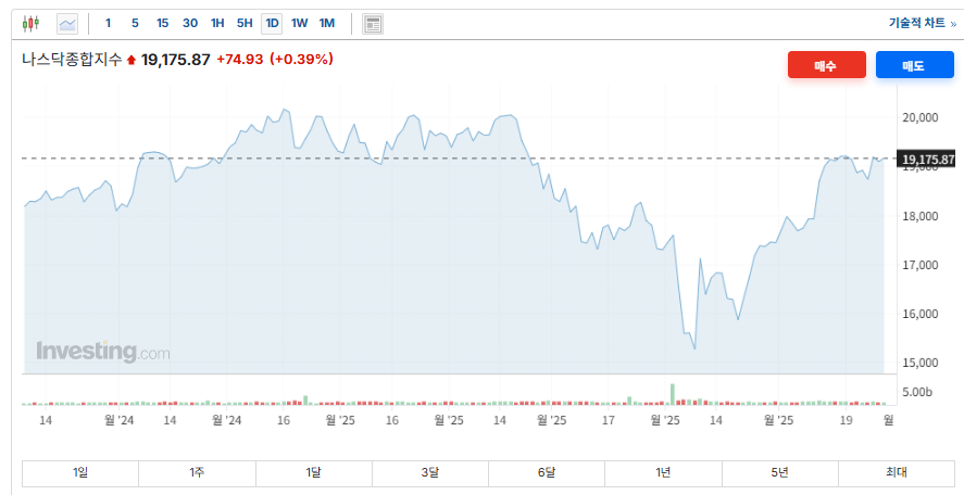 | 나스닥 종합 | 19,175.87 | +0.39% |
